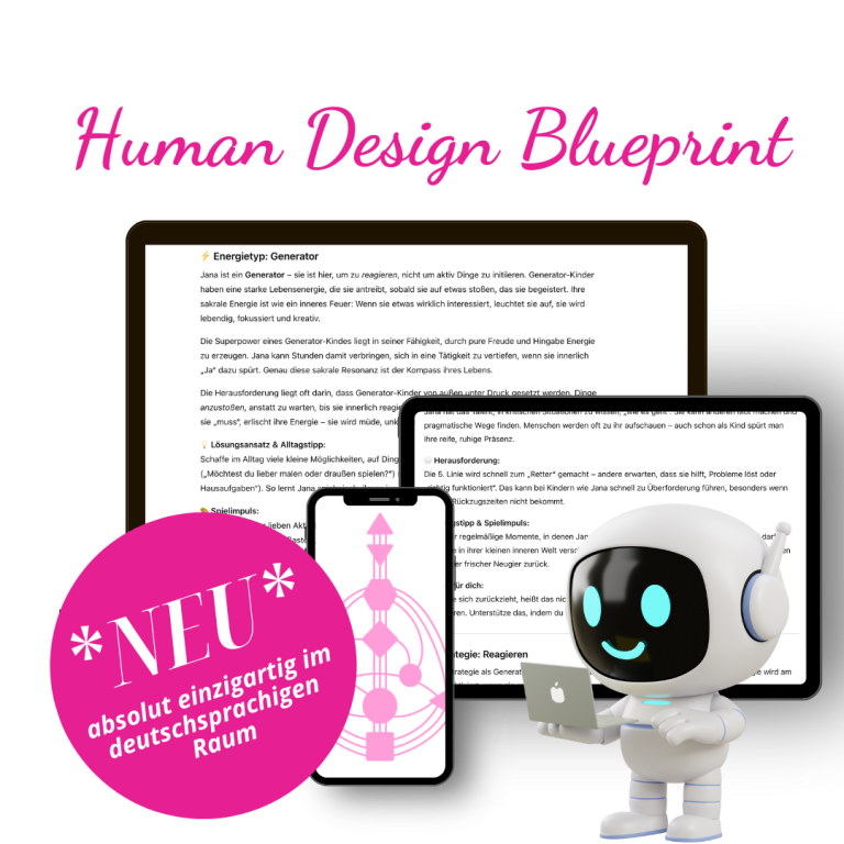 Das Human Design deines Kindes innerhalb weniger Sekunden als liebevolle Gebrauchsanweisung – verständlich, tief, sofort verfügbar